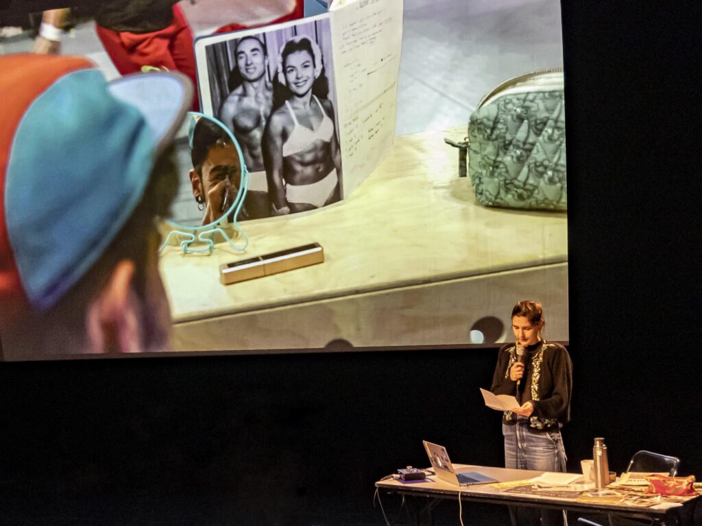 C’est une histoire de cirque dans laquelle les archives se mêlent et se font écho. Dans cette méthodologie poétique, Anna Tauber se met à l’écoute des coïncidences, comme des confirmations que le chemin emprunté est le bon. Les dates se répondent, les lieux aussi, et tout semble faire naturellement sens dans cette entreprise de mémoire et de transmission. C’est la vie de Suzanne, mais aussi la vie d’Anna, de Dalida, et de tout le monde dans la salle. Le format de la vidéo diffusée sur scène permet de très belles liaisons : Anna parle parfois à Suzanne depuis le plateau, qui lui répond à travers l’écran, dans le passé, dans un jeu de synchronisation. Différentes couches de réalité se superposent, comme un dialogue à travers le temps. Entre les archives des années 1950 et contemporaines d’une part, mais aussi entre les premières images de Suzanne filmée par Anna, qui datent de 2017, et aujourd’hui, le temps de la représentation. Depuis, il y a eu des doutes, des arrêts, une pause mondiale et une solitude imposée, et pourtant, la mémoire est restée.